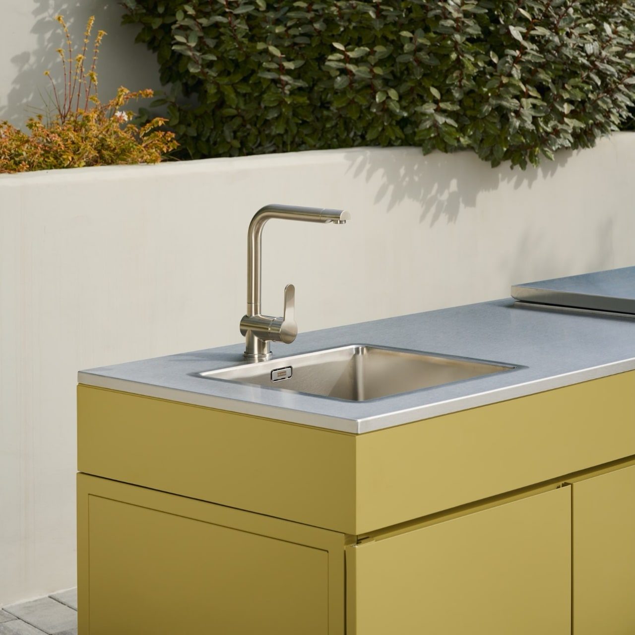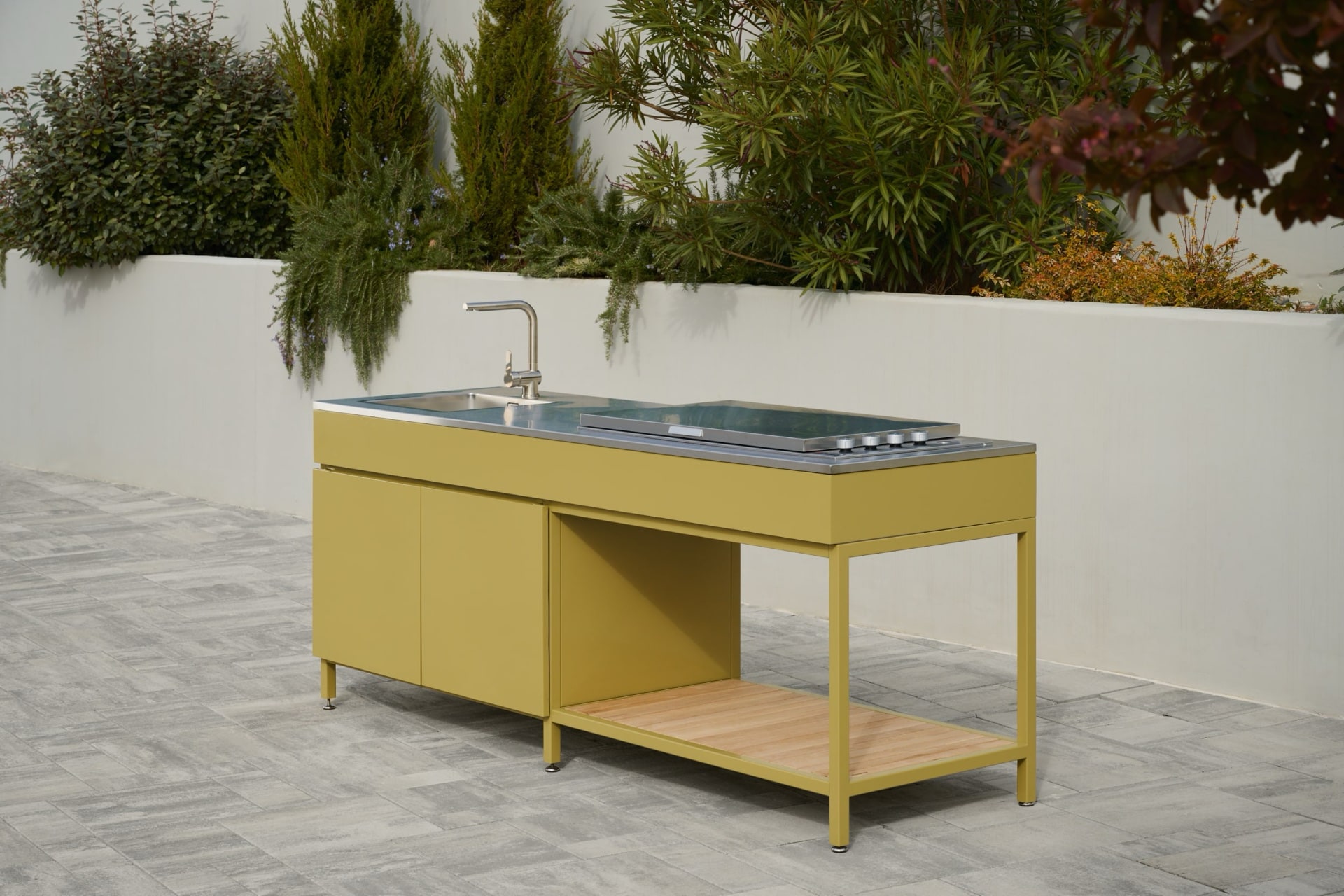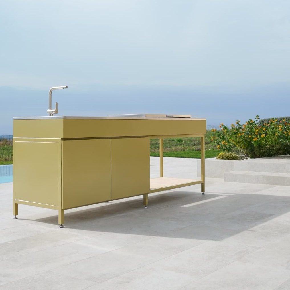 Defined by clean lines and a light aesthetic, this kitchen seamlessly blends form and function. Crafted from resilient powder coated stainless steel and a brushed stainless steel countertop, it thrives in every outdoor environment.