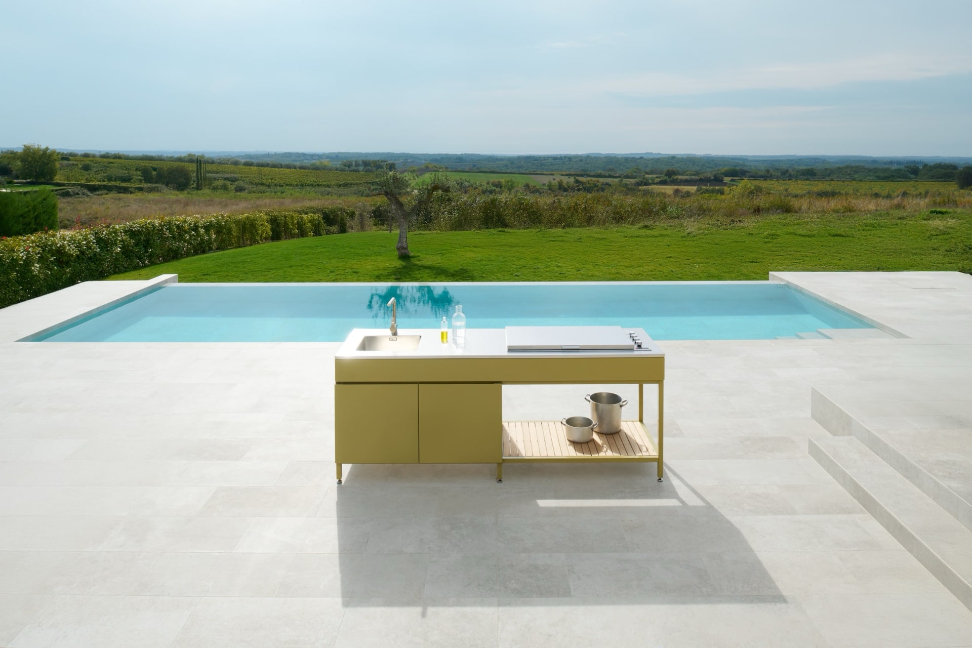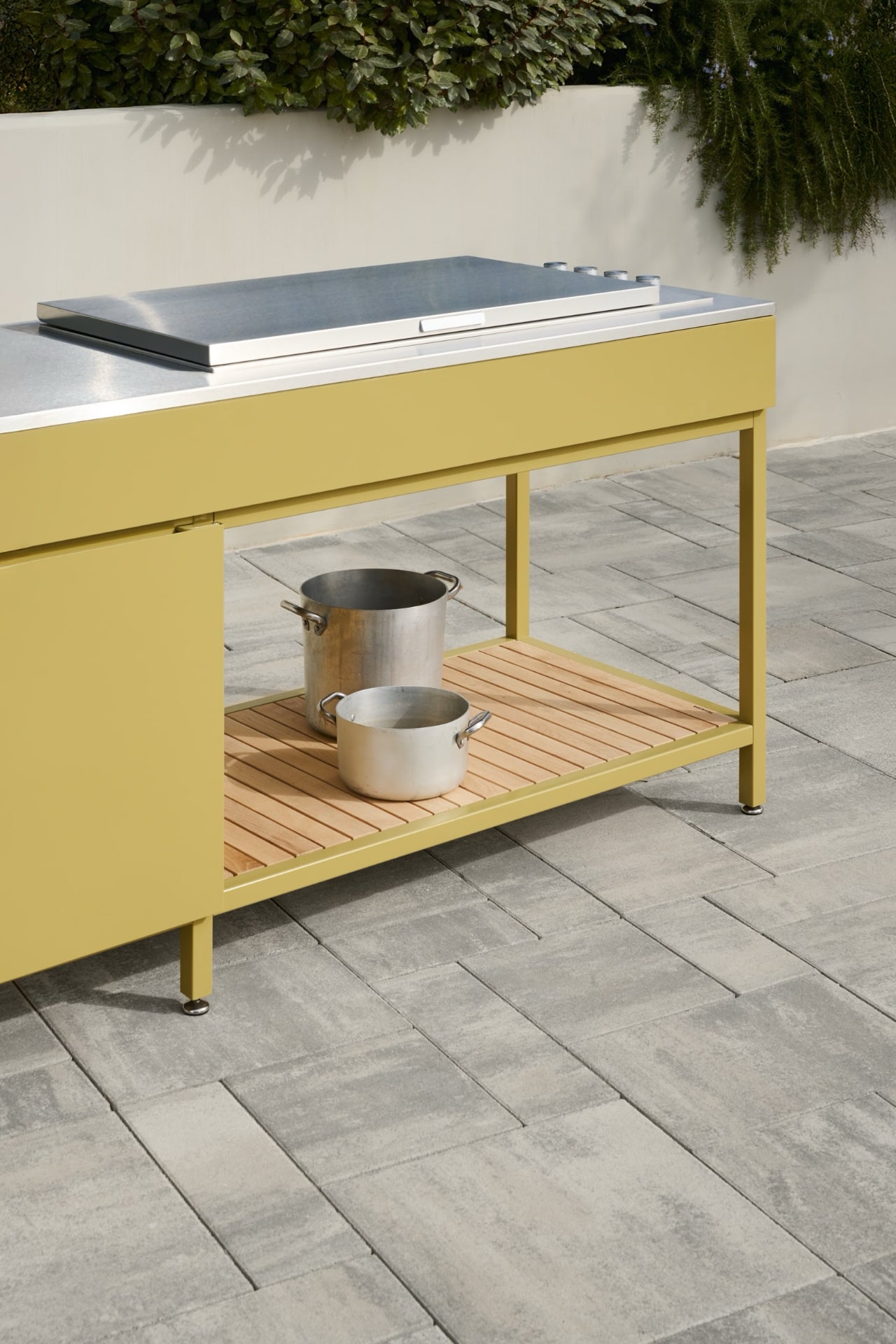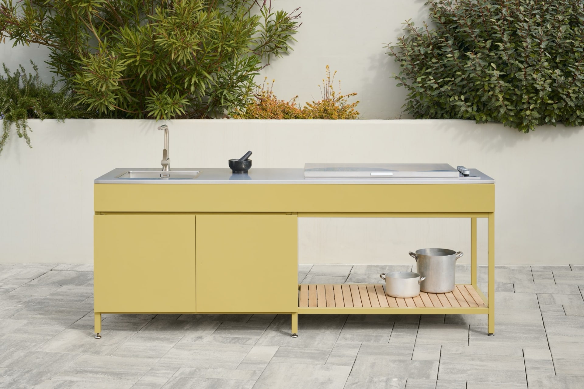 Defined by clean lines and a light aesthetic, this kitchen seamlessly blends form and function. Crafted from resilient powder coated stainless steel and a brushed stainless steel countertop, it thrives in every outdoor environment.